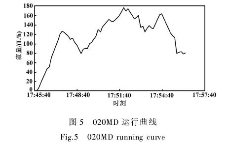 但(dan)當各台流量計依(yi)次上電至整櫃運(yùn)行時,020MD的流量測♊量(liàng)受到影♈響,,運行曲(qu)線如圖12所示