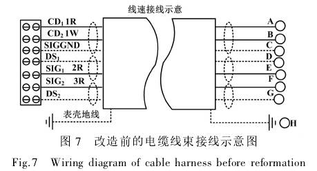 改造前的電纜線(xiàn)束接線如圖7所示(shi)。采用勵磁線圈的(de)屏🌍蔽層作爲信号(hào)地線的信号地線(xiàn)可能設計不當,因(yīn)此需要重新鋪設(shè)信🌈号地電纜。