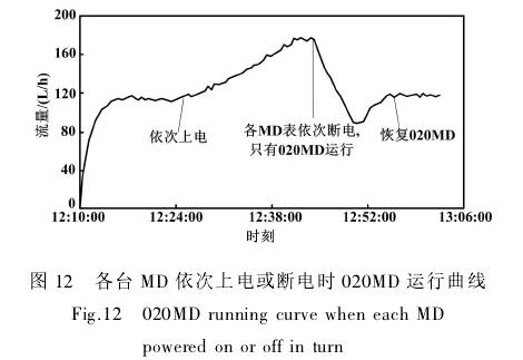 由圖12可知,各台(tai)流量計依次斷電(diàn)至020MD單台運行時,020MD流(liu)量顯示⛱️穩定。
