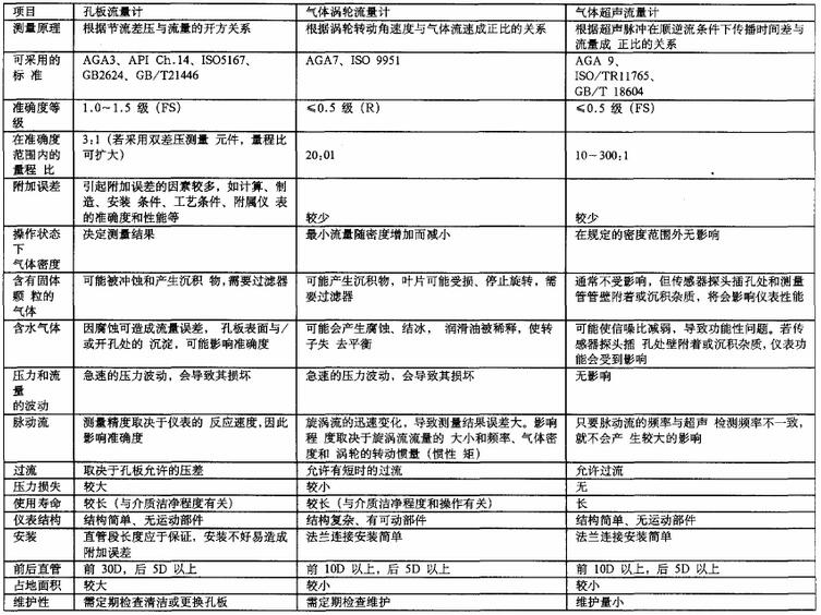 和氣(qì)體超聲(shēng)流量計(jì)。孔闆流(liú)量計氣(qi)體渦輪(lún)流量計(ji)和氣體(ti)超聲㊙️流(liú)量計的(de)技術性(xìng)能指标(biao)比較見(jian)下表:流(liu)量計性(xìng)能比較(jiào)如表1所(suo)示。