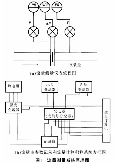 當流(liu)體流經管道中的(de)孔闆時,流束将在(zài)孔闆處形成局部(bu)收縮(像河流中的(de)狹小處一樣),流速(sù)增加、靜壓力降低(di),在孔闆前後産生(sheng)微小的靜壓力差(cha)(稱爲差壓)。流體的(de)流速增快,孔闆前(qian)後産生的差壓相(xiàng)應增大,從而可以(yi)通過測量差壓來(lai)間接測量天然氣(qì)流量的大小。流量(liang)測量系統原理如(rú)圖1所示,(a)爲流量測(ce)量儀表流程圖;(b)爲(wèi)流量主參數記錄(lu)和流量計算積算(suàn)系統方框圖。