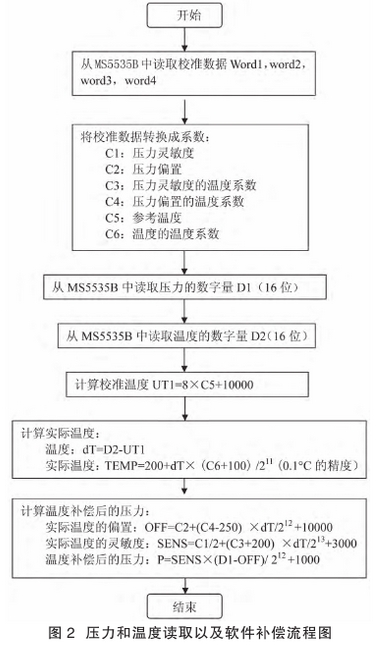 摘要:介紹(shao)了一種渦輪式(shì)氣體流量計 的(de)溫度.壓力補償(chang)方法,該方法采(cai)用MS5535B傳感器測量(liang)被測氣體的溫(wen)度和壓力,采用(yòng)軟件方法進行(hang)補償。 0引言. 氣體(ti)的流量通常用(yong)體積流量來表(biǎo)示,體積流量是(shi)指單位🈚時間内(nei)通過管路任一(yī)截面的氣體體(ti)積。但是由于氣(qì)體分✔️子排列松(song)散,随着溫度或(huo)壓力的變化,分(fen)子間距會發生(sheng)變化,體積也會(hui)發生相應的變(bian)化。體積與壓力(li)成反比,與溫度(du)成正比,在溫度(du)和壓力變化的(de)情況下,無法計(jì)☎️量和比較氣體(ti)的體積流量,需(xu)要将其統--轉換(huàn)爲标準狀态下(xià)的體積流量。工(gong)程上氣體⚽流量(liàng)--般都以标☁️準狀(zhuàng)态下🔞的體積流(liú)量來表示。因此(cǐ),需要對工🤩作狀(zhuàng)态下測得的氣(qi)體流量進行溫(wen)度、壓力補償。 1渦(wo)輪式氣體流量(liàng)計的溫度、壓力(li)補償方法 渦輪(lun)式氣體流量計(ji)直接測量的是(shì)工作狀态下氣(qi)體的體積流量(liang),标準狀态下氣(qì)體的體積流量(liàng)爲: 式中qvn、qv-分别爲(wèi)标準狀态和工(gong)作狀态下的體(ti)積流量,m³/h;p、T、Z-分别爲(wèi)工.作⚽狀态下絕(jué)對壓力(Pa),熱力學(xué)溫度(K)和氣體🌏壓(yā)縮系數;pn、Tn、Zn一分别(bié)爲标準狀态下(xià)絕對壓力(Pa),熱力(li)學溫度(K)和❌氣體(tǐ)壓縮系數。 由于(yú)被測氣體所處(chù)狀态壓力較低(dī),且溫度大大高(gāo)于🈚臨界溫度,因(yīn)此可以按理想(xiǎng)氣體計,這時氣(qì)體壓縮系數取(qǔ)爲1甲。将測量得(dé)到的工作狀态(tai)下的溫度和壓(yā)力數值帶入(1)式(shi),即可得到補償(cháng)後的氣體流量(liang)數值。 2溫度、壓力(lì)測量用傳感器(qi) 工作狀态下的(de)溫度、壓力數值(zhi)可采用型号爲(wèi)MS5535B的集成壓力傳(chuán)感器來進行測(cè)量。MS5535B的主要功能(neng)是将從壓🔴阻式(shi)壓力傳感器輸(shu)☎️出的未經補償(cháng)模拟電壓值轉(zhuan)換爲16位的數字(zi)量,同時提供-一(yi)個傳感器溫度(dù)的16位❓數字量。該(gāi)芯片具有如下(xia)特點: 1)0一14bar的絕對(dui)壓力範圍 2)芯片(pian)中存有用于軟(ruan)件補償的6個系(xì)數 3)15位的ADC 4)3線串行(háng)接口 5)1個系統時(shí)鍾(32.768kHz) 6)低電壓低能(néng)量消耗 7)供電電(dian)壓在2.2V~3.6V 8)低電壓電(diàn)流 9)-40~+125℃工作溫度 MS5535B有(you)8個引腳,引腳定(ding)義和功能如表(biao)1所示。 3溫度、壓力(lì)測量傳感器與(yu)單片機的接口(kǒu)電路設計💃🏻 MS5535B與單(dān)片機MSP430F147的通信是(shi)通過3線同步的(de)串行接口實現(xian)的。圖1爲壓力傳(chuan)感器MS5535B和單片機(jī)MSP4320F147的硬件連接圖(tu)。單片機MSP430F147的P2.1引腳(jiǎo)輸出同步串行(hang)時鍾信号,P2.4引腳(jiao)采樣由MS5535B輸☎️出的(de)數據,P2.2引腳輸出(chū)數據給MS5535B,P2.0引腳向(xiang)MS5535B輸出32.768kHZ的主時鍾(zhong)信号。 4軟件設計(jì) MS5535B輸出的電壓與(yǔ)溫度和測量過(guo)程的誤差有很(hěn)大關系,所以✉️需(xū)要補償這些影(yǐng)響。補償是通過(guò)單片機MSP430F147軟件補(bu)償來實現🚶的。補(bu)償用的校準數(shu)據Wordl到Word4存儲在MS5535B的(de)64位PROM中,可通過單(dan)片機MSP430F147的軟件讀(dú)出用于對16位的(de)壓力值(D1)和16位溫(wēn)度值(D2)進行補償(cháng),得到用于渦輪(lun)式氣體流🍓量計(ji)溫度、壓力補償(chang)的壓力值和溫(wēn)度值。圖2描述了(le)讀取壓力值、溫(wēn)度值和軟件補(bǔ)償執行的過程(cheng)。首先,通過串行(háng)⭐接口讀出wordl到word4。下(xià)一一步,用位方(fang)式邏輯和移🔞位(wei)操作取出補償(cháng)系數Cl到C6(wordl到word4的位(wèi)模㊙️式參考表2)。然(rán)🐅後單片機MSP430F147通過(guò)串行接口讀取(qu)📐16位的壓力值(D1)和(he)16位溫度值(D2)。最後(hòu),通過D1、D2和C1到C6運用(yòng)圖2所示的運算(suàn)法則計算出補(bǔ)償後的🛀🏻壓力值(zhí)。 Wordl到Word4、D1和D2是通過3線(xiàn)同步串.行通信(xin)讀取的。MS5535B在SCLK的上(shang)升沿采樣一位(wei)🛀,并且在上升沿(yan)發送一-位,以此(cǐ)來實現信号轉(zhuǎn)🈲換的同步。單片(pian)機MSP430F147在SCLK的下降沿(yan)采樣從MS5535B的DOUT引腳(jiǎo)輸出的數據,并(bìng)且在SCLK的👄下降沿(yan)将數據發送到(dao)MS5535B的DIN引腳,SCLK信号是(shì)由單片機MSP430F147産生(sheng)的。輸出數據的(de)選擇通過向MS5535B的(de)DIN(數據輸入)腳輸(shū)入相應的指令(lìng)來實現。 如圖3所(suo)示,MS5535B和單片機MSP430F147的(de)每--次通訊都是(shì)以單片機MSP430F147向🆚MS5535B芯(xīn)片的DIN腳發送一(yī)-個指令序列開(kai)始的。在每一-個(gè)指☂️令序列之前(qián)都有一一個🔴開(kai)始序列(3個高電(dian)平1),每一個指令(lìng)序列之後都有(you)一-個停止序列(liè)(3位低電平0)。每一(yi).條指令♈有四位(wei)組成,用于選擇(zé)由M55535B的DOUT腳輸出的(de)是壓力、溫度或(huo)是校準數據。在(zai)輸出壓力和溫(wēn)度時,在停止序(xù)列的🈲最後--位時(shi),MS5535B的DOUT腳會輸出-一(yī)個應答信号一(yī)低電平到高電(dian)平的轉換,表示(shi)了🈲--次轉換的開(kai)始。應🥵答信号之(zhi)後,單片🔞機MSP430F147向MS5535B的(de)SCLK腳輸人2個脈沖(chong),然後再輸出低(dī)電平,保持MS5535B的SCLK腳(jiao)爲低,直到在MS5535B的(de)DOUT腳出現由高🌏到(dao)低的信号,表示(shì)轉換