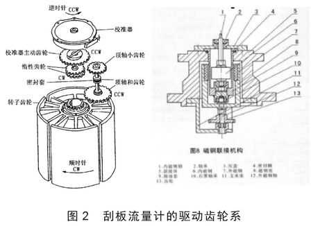 (4)出軸密封(fēng)部分:出軸密封部(bu)分是連接流量計(ji)表頭和流🥵量計殼(ke)體的部分,它一般(bān)有三種結構:磁性(xìng)連軸器🌍、機械密封(feng)式的連接👨❤️👨、“O”型密封(feng)圈式的連接。這裏(li)我們主♈要分析以(yi)磁性聯軸器爲連(lián)接的結構易出現(xiàn)的故障。磁性聯軸(zhóu)器脫磁,包括打滑(hua),溫🌍度升高,都🐉非常(chang)容易引起脫磁。無(wú)法轉動,就帶動不(bú)了精度修正器轉(zhuan)動,那麽依次向上(shàng),也就不發生轉動(dòng)。出軸密封的聯軸(zhóu)器脫磁,不能發生(shēng)轉動,帶動.上面的(de)精度修正器裏面(mian)的齒輪也不發生(shēng)轉動,所✉️以字輪也(yě)不再轉動(圖2)。