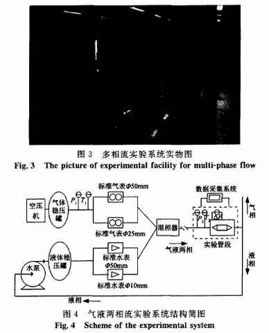裝(zhuāng)置的工(gōng)作流程(chéng)爲:水經(jing)過穩壓(yā)罐後,通(tōng)過标準(zhǔn)水表讀(dú)取其體(ti)積流量(liang),進入混(hùn)相器;空(kōng)氣壓縮(suo)機将空(kōng)氣壓縮(suo)到穩壓(ya)❄️罐,通過(guo)标準氣(qi)表讀取(qǔ)其體積(jī)流量,并(bing)用溫🌈度(dù)計和壓(ya)力表測(cè)量此時(shí)的氣相(xiàng)溫度(T)和(hé)壓力(p加(jia):),最後進(jìn)人混相(xiàng)器與液(ye)相混合(hé);氣液兩(liang)相流經(jīng)🏃♀️過8m長的(de)直管👣段(duan),充分混(hun)合🌈後進(jin)入氣液(yè)兩相實(shi)驗管段(duàn),在此處(chù)安裝✔️雙(shuāng)錐流量(liang)計并測(ce)量氣液(yè)兩相的(de)混合差(cha)壓,同時(shi)測量雙(shuang)錐流量(liàng)計前的(de)壓力(p2)和(he)溫度(T2),采(cai)🔴用數據(ju)采集系(xì)統記錄(lù)各測量(liang)值。