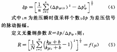 定(dìng)義脈動(dòng)振幅爲(wèi)差壓瞬(shùn)時值和(hé)時均值(zhí)之差,其(qí)均方根(gen)爲: