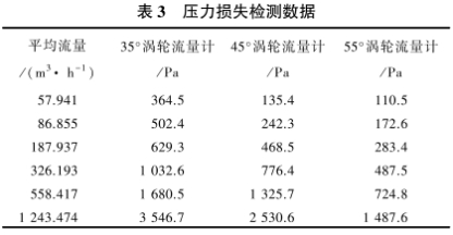 表3列出了(le)安裝3種不同(tong)螺旋角渦輪(lun)流量計在儀(yí)表🍉取壓口處(chu)的壓力損失(shī)。