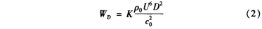 式中,WD爲渦(wo)輪旋轉輻射的(de)聲功率;K爲比例(lì)系數;ρ0爲介💞質的(de)密度;U爲葉尖速(sù)度;D爲葉尖直徑(jing);C0爲介質聲速。