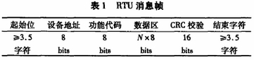 一個RTU消(xiāo)息幀由地址域、功(gong)能域、數據域、CRC校驗(yàn)域外加起🧑🏾🤝🧑🏼始位🏒和(he)結束字符共同構(gou)成,其典型格式如(ru)表1所🙇🏻示。