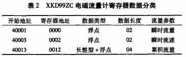 XKD99ZC電磁(cí)流量計是-種智能(néng)化的流量儀表,内(nei)嵌32位高速MCU處理器(qì),可以⛷️測量瞬時流(liú)量、累計流量等參(can)數,數據通信傳輸(shu)接口爲半雙工方(fang)式,支持2400、4800.9600bit/s等波特率(lü),接口電氣标準遵(zūn)從EIA/TIA-485國際标準。用戶(hu)無須對流量計進(jìn)行底層編程🔞,隻需(xū)設置好相關參數(shù)即可。流量計内部(bu)寄存器存儲的數(shù)據類型與地址如(rú)表2所示。