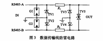 對于戶外運行的(de)系統或設備,-一個(ge)很重要的問題就(jiu)是防雷。特别是南(nán)方水庫所在地域(yu),由于雨水充📞沛,空(kōng)氣濕度很大,較之(zhī)幹燥地區更容易(yì)産生雷電災害,輕(qīng)則導緻數據傳輸(shū)出錯,嚴重時會導(dǎo)緻儀器設備損毀(huì)。因此對水庫涵管(guǎn)流量測量系統中(zhong)的防雷設計必須(xu)高度重視。本系統(tong)中的防雷電路包(bāo)含㊙️市電交流進線(xiàn)保護電路和低壓(ya)數據傳輸線路保(bǎo)護電路。交流電源(yuan)進線過壓保護器(qì)采用的型号爲DEHNguard275,數(shù)據傳輸線路保護(hu)🈚電路如圖3所示。
