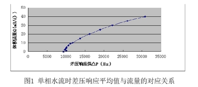 固定節流(liú)孔(即出液孔(kǒng))寬度爲5mm,在單(dan)相水流時,打(dǎ)開⭐集流器集(jí)流,差壓傳感(gan)器的響應值(zhí)與流量的對(duì)應關系如圖(tu)1所示。