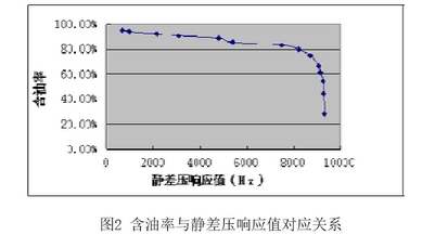 固定一(yī)定長度(儀器(qì)設計的差壓(ya)傳感器上下(xia)壓力面的💔導(dǎo)壓孔間距爲(wei)0.5m)的管段,關閉(bì)集流器,在不(bu)同含油率下(xia)差壓傳感器(qì)的靜差壓響(xiǎng)應值與含油(yóu)率的☎️對應關(guan)系如圖2所示(shi)。