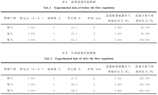玻璃(lí)轉子流量(liang)計檢定介(jie)質爲氧氣(qi)前調流量(liàng)和後調流(liu)量實驗數(shù)據如表1和(hé)表2所示.