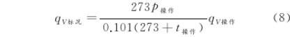 式(shi)(6)兩邊同(tóng)時除以(yǐ)時間t,得(dé)到關于(yu)理想氣(qi)體操作(zuo)狀态和(he)标準狀(zhuàng)态下體(ti)積流量(liàng)的等式(shi):