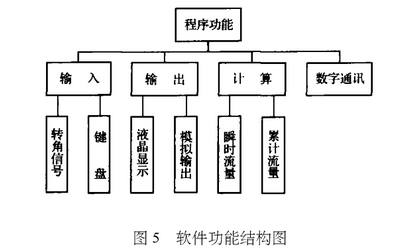 軟件采(cai)用模塊(kuai)化設計(jì),按功能(néng)分爲4部(bu)分:輸入(ru)、輸出、流(liú)量計算(suan)和數字(zi)通訊,各(gè)部分根(gen)據具體(tǐ)情況細(xì)分爲多(duo)個模塊(kuài),完成相(xiàng)應功能(néng),如圖5所(suǒ)示。