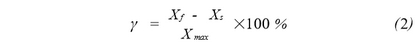 式中Ƴ爲(wei)相對誤(wù)差;Xf爲浮(fu)子流量(liang)計測量(liang)值;Xs爲标(biao)定點流(liú)量值;Xmax爲(wei)浮子流(liu)量計最(zuì)大測量(liàng)值。