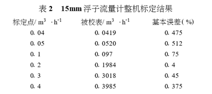 采用精(jīng)度爲0.07%的(de)水流量(liang)标準裝(zhuang)置對15mm口(kǒu)徑的浮(fú)子流量(liang)計整機(ji)進行标(biao)定,該浮(fú)子量程(cheng)爲0.04~0.4m³/h,标定(ding)結果如(rú)表2所示(shi)。
