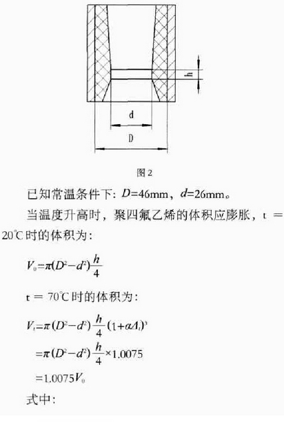 從(cóng)錐管的結構(gou)看(截取直管(guan)段一段),如圖(tu)2所示外層是(shì)金屬✔️測量管(guan),内層是聚四(sì)氟乙烯襯裏(lǐ),由于溫度變(bian)化不大,金屬(shu)測量管尺寸(cun)的變化可以(yǐ)不考慮,即D不(bú)變。從資料.上(shang)可查到聚四(si)氟乙烯在0~100C内(nei)的線脹系數(shu)爲0.5x104/℃.下面以DN25口(kǒu)徑爲例,計算(suan)當⁉️溫度t從20℃變(bian)化到70℃時内徑(jìng)d的大小。