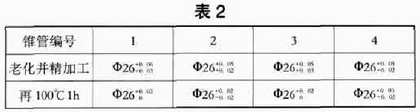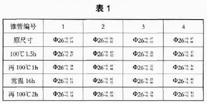 從試(shi)驗結果可以(yi)看到,在第1次(ci)進行100℃、1.5h的溫度(du)試驗後,錐管(guan)🙇🏻直管段的尺(chi)寸就已經變(biàn)小了,冷卻到(dào)常溫時,尺寸(cùn)并沒有恢複(fú);再進行㊙️第2次(cì)溫度試驗時(shi),錐管尺寸的(de)變化已經不(bu)大,因此可将(jiang)💛錐管先粗加(jiā)工,接着進行(hang)老化‼️試驗,最(zuì)後再精加工(gōng),這樣零件尺(chǐ)寸受溫度的(de)影響應該很(hěn)小。爲了證實(shi)這一點,重新(xīn)進行溫度試(shi)驗,試驗情況(kuang)如表2所示。