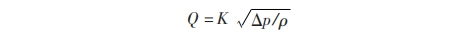 式中:Q爲管道中流(liú)體的流量;K爲無量(liang)綱系數;△p爲孔闆節(jiē)流前後的壓力差(chà);ρ爲流體密度。