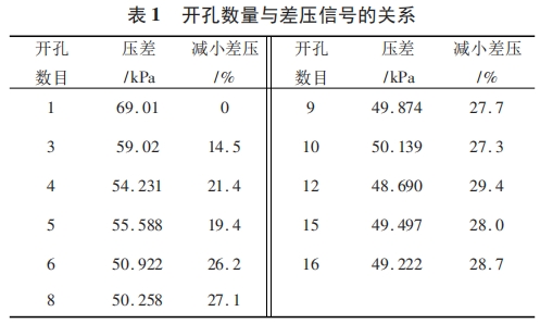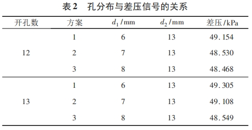 孔的分布(bu)與差壓信号關系(xi)如表2所示。