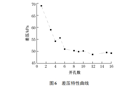 給(gěi)定的速度入口的(de)初始速度爲1m/s。對一(yi)段長爲1.2m(等于前後(hòu)🛀🏻直管段長度24D)的直(zhi)管道進行模拟仿(páng)真,參數設置以及(jí)湍流模型的選擇(zé)與上述模拟相同(tong),結果可得直管🛀🏻段(duàn)的沿程壓力損失(shi)爲314Pa。由,上述😄仿真計(ji)算結👨❤️👨果的進出口(kǒu)壓力差減去直管(guan)道的沿程♻️壓力損(sǔn)失🈲,即可得到節流(liú)前後的差壓。開孔(kong)數量和差壓的關(guān)🏃系如圖6所示,開孔(kǒng)數量和差壓信号(hào)的關系如表1所示(shì)。