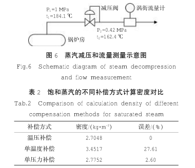 蒸汽減(jiǎn)壓和流量測(cè)量示意圖如(ru)圖6所示。化工(gōng)廠鍋爐出口(kou)的飽和蒸汽(qi)(1MPa,184.1℃),經過減壓閥(fá)後轉變爲過(guo)熱蒸💜汽狀态(tai)(0.42MPa,162.4℃,.密度2.7048kg/m3),不同補(bǔ)償方式計算(suàn)的密度對比(bǐ)如表🤟2所示,溫(wēn)度補償誤差(cha)高達27.61号,而壓(yā)力補🔞償誤差(cha)僅在2.60号。