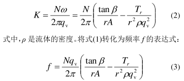 式中(zhong),A是流量計葉片(piàn)進口處的流道(dao)截面積,N是葉片(pian)數🏃,qv是體積流量(liàng),r是葉片邊緣處(chù)的半徑和輪毂(gu)半徑💛的均方根(gēn),即平均有效半(ban)徑,β是r對應的葉(yè)片角度。實🙇🏻際情(qing)況下,葉片受到(dao)的阻滞力矩T,使(shi)轉子實際旋轉(zhuan)🛀角速度w低于理(li)想角速度ɷi,于是(shì),實際儀表系數(shu)K.爲:
