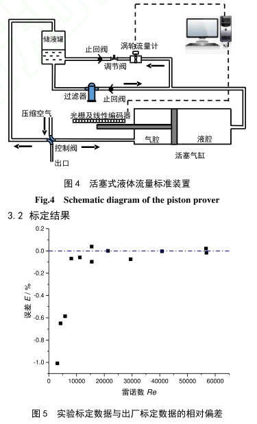 某校準實驗(yàn)室的小型活塞(sāi)式液體流量标(biāo)準裝置以🔞丙二(er)醇-水溶液爲介(jie)質,将這台DN25渦輪(lun)流量計作爲期(qi)間核查對象。裝(zhuang)置使用壓縮空(kōng)氣驅動的18L主動(dong)活🏃♀️塞作爲标準(zhun)器(如圖4所示),最(zuì)大🐇流量260L/min,裝置的(de)擴展不确定度(du)Ue=0.05%(k=2)。該裝置有“運🈲.行(hang)”和“返回”兩種操(cāo)作模式。在“運行(háng)”模式中,壓縮空(kong)氣被引入到氣(qi)腔,以恒定的速(su)度推動活塞向(xiàng)右移動,将介質(zhi)排出液腔并通(tong)過被檢流量計(ji)。光栅和線性編(biān)碼器負責确定(dìng)活塞的位移。當(dāng)活塞完成一次(cì)行程後,進入“返(fǎn)回”模式。控制閥(fá)切換使壓縮空(kōng)氣進入儲液罐(guan),推動活塞向左(zuǒ)移㊙️動,直至液腔(qiāng)完全被介質填(tián)滿。系統調整後(hòu),準備進行下一(yi)次檢測。