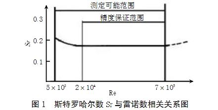 式(shì)中:b爲阻流件(jiàn)寬度,m;u爲流經(jing)流量計的平(píng)均流速,m/s;f爲漩(xuan)渦頻率,Hz;Sr爲斯(si)特羅哈爾數(shù)。