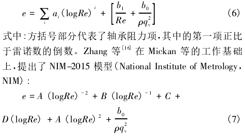 式(5)中4個含(hán)待定系數(shu)的修正項(xiàng)依次分别(bie)爲:流體阻(zǔ)力項,軸承(cheng)靜态阻力(lì)項,軸承粘(zhān)性阻力項(xiàng),以及由于(yu)軸向推力(li)和轉子系(xi)統的動态(tai)不平衡引(yǐn)起的軸承(cheng)阻力項。最(zuì)後一項影(yǐng)響很小,可(ke)以忽略不(bu)計。在研究(jiu)中高壓氣(qì)體渦輪流(liu)量計時考(kǎo)慮到軸與(yu)軸承之間(jian)的潤滑油(you)處于層流(liu)狀态,認爲(wei)渦輪軸承(chéng)阻力矩與(yǔ)其渦輪旋(xuan)轉角速度(du)呈一階線(xian)性關系,他(tā)們在“渦輪(lún)減速”實驗(yan)中發現,軸(zhou)承阻力對(dui)渦輪流量(liang)計的影響(xiang)在低雷諾(nuo)數下尤其(qi)明顯,基于(yú)實驗數據(jù),提出了以(yǐ)下的模型(xing):