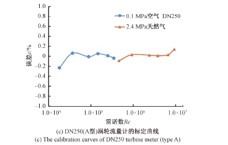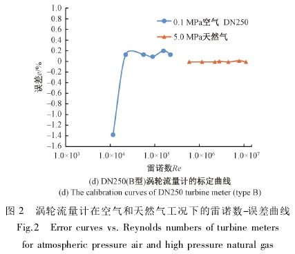 圖2所(suǒ)示爲。上述(shu)渦輪流量(liang)計基于雷(léi)諾數(Reynoldsnumber,Re)的誤(wù)差對比。由(yóu)于渦輪流(liu)量計一般(bān)是以體積(jī)流量标稱(chēng)其量程範(fan)圍,轉化到(dao)雷諾數後(hòu),常壓下雷(lei)諾數量程(cheng)與高壓下(xià)雷諾數量(liang)程存在間(jian)隔,兩個工(gong)況壓力相(xiang)差越小,間(jian)隔區間越(yue)小,常壓雷(lei)諾數上限(xian)的誤差與(yǔ)高壓雷諾(nuo)數下限的(de)誤差越接(jiē)近,圖2(b)與圖(tu)2(c)中兩者相(xiàng)差分别爲(wèi)0.24%和0.05%,可以認(rèn)爲流量計(jì)的誤差幾(ji)乎随雷諾(nuo)數連續變(bian)化。圖2中兩(liǎng)條誤差曲(qu)線沒有重(zhòng)疊或交集(ji),意味着流(liú)量計分别(bie)工作在不(bú)同的流動(dong)特征區域(yu),無法進行(háng)常壓空氣(qì)與高壓天(tiān)然氣之間(jian)的點對點(dian)誤差對比(bǐ)。因此,需要(yao)增加高壓(ya)空氣下的(de)标定實驗(yan)。