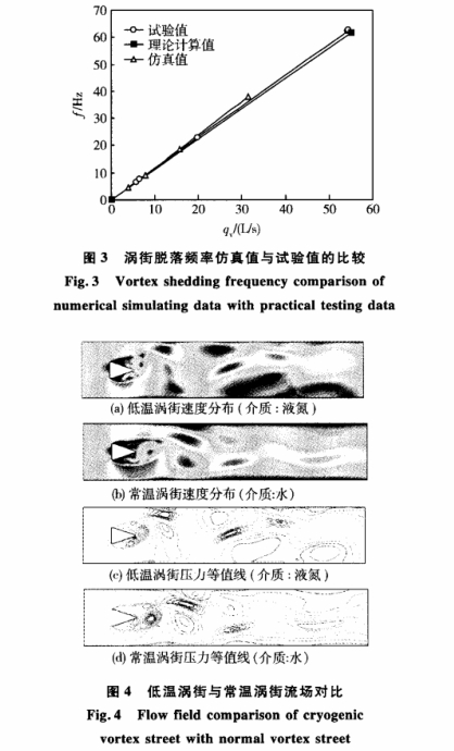 在(zài)超低溫下(xià),信号感測(ce)器靈敏度(dù)下降,因此(ci)必須産✊生(sheng)更加強🍓烈(liè)穩定的旋(xuan)渦,才能提(tí)高信噪比(bi),滿足精度(du)要求。此☂️外(wài),液😘氫、液氧(yang)和液氮等(deng)低溫流體(ti)的物性極(jí)爲特⭐殊,其(qi)黏🛀🏻度極低(di),極易産生(sheng)空穴。衆所(suǒ)周知,旋渦(wo)發生體形(xíng)狀和檢測(ce)位置對渦(wo)街流量計(ji)的測量☁️質(zhì)量影響很(hen)大,,但是受(shou)檢測條件(jian)和手段的(de)限制,難✍️以(yǐ)對其影響(xiang)進行有效(xiào)評價。利用(yong)計算流體(ti)力🔅學(CFD)數值(zhi)仿真的方(fang)法模拟不(bu)同旋渦發(fa)生體渦街(jiē)流量傳感(gan)器内部流(liu)場,進而😍确(que)定旋渦發(fā)生體形狀(zhuang)以及檢☔測(ce)點位置💃🏻,對(duì)渦街流量(liàng)傳感器🌈的(de)優化具有(you)重要的👣指(zhǐ)導意義。本(ben)文根據低(di)溫流體(以(yǐ)液氮爲例(li))的物性參(cān)數和流體(ti)力學理論(lun),對❗低溫渦(wo)街的流場(chǎng)進行理論(lùn)計算和數(shù)值仿真,分(fèn)析㊙️低溫流(liu)🈲體渦街的(de)産生過✍️程(cheng),對比低溫(wēn)渦街和常(cháng)溫渦街流(liu)場分布的(de)異同,爲低(dī)溫渦街流(liu)量🐆計的設(shè)計和優化(huà)提供理論(lùn)依據。