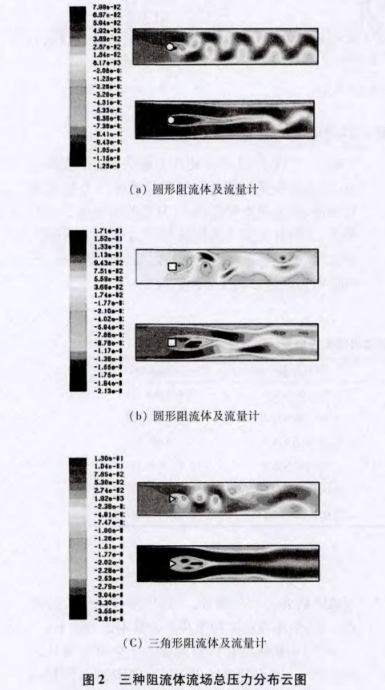 進行(hang)數值仿真(zhēn),分析流量(liang)計中應變(biàn)片對三種(zhong)阻流🚶體流(liu)場壓力和(hé)速度的影(ying)響.結果表(biǎo)明,應變片(piàn)改變了流(liú)場振蕩的(de)頻率,三角(jiǎo)形渦街流(liú)量計的壓(yā)力損🐇失最(zui)小.