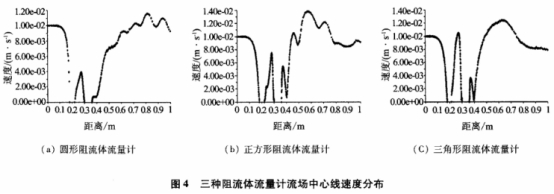 2.2三種(zhǒng)阻流體流(liu)場中心線(xiàn)速度分析(xi)