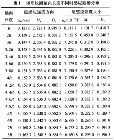 對于矩(ju)形線圈,将所(suǒ)考慮橫截面(mian)區域劃分成(chéng)41x41個網格,令矩(ju)形線圈的寬(kuan)爲6cm,等于管道(dao)内徑2R。每個勵(lì)磁線圈的✊匝(za)數爲6,厚度爲(wèi)2cm,2個線圈之間(jian)的距離爲6cm,緊(jin)貼測量管壁(bi),線圈中電流(liú)強度爲10mA。首先(xian)令矩形線圈(quan)軸向👅長度的(de)範圍從R到8R,間(jiān)隔爲R;其次,在(zài)前面所确定(ding)尺寸4R附近,提(ti)高尺度分辨(biàn)率,從❄️3R到5R,間隔(ge)爲0.2R。考查矩形(xing)線圈☂️在測量(liang)管橫💜截面上(shang)的感應磁場(chǎng)分布情況,如(rú)表1所示。