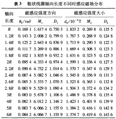 取鞍(an)狀線圈圓弧(hu)段的弧度爲(wei)154°,首先取線圈(quān)的軸向長💛度(dù)範圍R~6R,間隔爲(wèi)R;其次在尺寸(cùn)2R附近,提高尺(chǐ)度分辨率,從(cong)🆚R到3R,間隔爲0.2R。考(kao)查鞍狀線圈(quan)在電極橫截(jié)面上的感應(ying)磁場分布情(qíng)況,如表3所示(shi)。