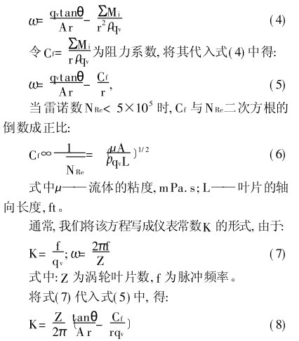 由式(5)和式(shi)(6)可見:當流體(tǐ)的粘度增大(da)時,渦輪的轉(zhuǎn)動角📧速度變(bian)小;當流體密(mi)度變大時,渦(wō)輪的轉動角(jiao)速度也随之(zhi)增大‼️。在流體(tǐ)速度較小(相(xiàng)當于層流狀(zhuàng)态)時,渦輪的(de)頻率響應非(fei)線性,且受流(liú)體☀️性質變化(huà)影響較大;當(dang)流體速度較(jiao)高(相當👨❤️👨于湍(tuan)流狀🏃♀️态)時,式(shi)變小,渦輪響(xiǎng)應近似線性(xìng),儀器常數K基(jī)本上不受流(liú)體粘度變化(hua)影響。