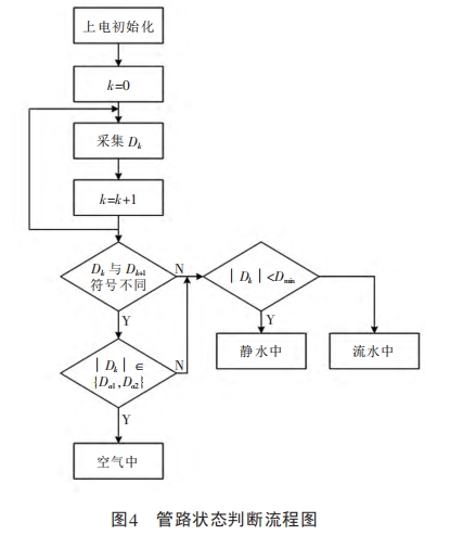 圖3所示(shi)的流程(cheng)爲測量(liàng)系統采(cai)樣數據(jù)的處理(lǐ)過程,因(yīn)此未涉(shè)🔴及勵磁(ci)、通信等(děng)功能模(mo)塊。系統(tǒng)對采集(jí)的原始(shǐ)數據㊙️進(jin)行判斷(duan),區分電(dian)極處于(yu)空氣、靜(jìng)水或流(liu)水等三(sān)種不同(tóng)狀态,如(rú)圖4所示(shi)。