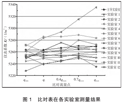 本次(cì)比對,各(ge)參比實(shi)驗室完(wan)成率爲(wei)100%,比對完(wan)成後,主(zhǔ)導實驗(yan)室對各(ge)參比實(shí)驗室的(de)數據進(jìn)行了彙(hui)總統計(ji),各實驗(yan)室測量(liàng)結果如(rú)圖1所示(shi)。由圖1可(ke)以看出(chū),實驗室(shi)3的測量(liàng)結果随(suí)着流量(liang)增大而(er)增大,與(yǔ)其他參(can)比實驗(yàn)室的測(cè)量結果(guǒ)産生了(le)較大偏(pian)移,需進(jìn)行異常(cháng)值判别(bié)。
