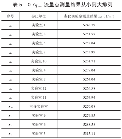可(ke)以判定(dìng)實驗室(shi)3在0.7.流量(liàng)點的測(ce)量結果(guǒ)X13=5315.11不屬于(yu)異常值(zhi),不需要(yao)剔除。