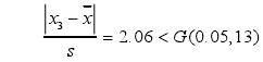 測量(liàng)次數n=13,将(jiāng)各實驗(yàn)室測量(liang)結果按(an)從小到(dào)大的順(shun)序排列(lie)爲x1,x2,....X13。按置(zhì)信水平(ping)P=95%,即α=1-0.95=0.05,n=13,查狄(dí)克遜準(zhun)則的臨(lin)界值表(biao)得到G(0.05,13)=0.557。