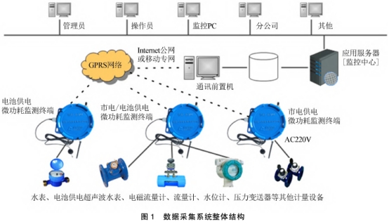 設計的(de)大口徑流量(liang)計數據采集(ji)系統總體結(jié).構具體如圖(tu)1所示㊙️。該系統(tǒng)主要由3個層(céng)次組合:數據(jù)獲取♌端,即現(xiàn)場的水✌️表及(jí)大流量計;數(shù)據監測端,即(jí)遠程監控及(ji)其數據✨采樣(yàng)終端WB-RTU;數據傳(chuán)輸端,即公用(yòng)的遠傳無線(xiàn)通信網絡GPRS。由(yóu)🌐以上模塊構(gòu)成的流量計(jì)數據采集系(xi)統,具有對大(dà)口徑💘流量計(jì)的數據采集(ji)與處理等功(gong)能。