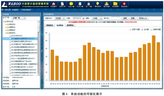 數據(ju)采集系統的(de)主要功能是(shi)獲取流量數(shù)據并展.示,同(tong)‼️時保證數據(ju)傳輸的實時(shí)性和正确率(lǜ)。遠程采🌍集數(shu)據是通過GPRS的(de)無線傳輸來(lái)進行數據的(de)穩定傳輸,然(rán)後對其數據(ju)進行可視化(hua)顯示。因此,針(zhen)對流量☀️數據(ju)的可視化實(shí)現,系統界面(mian)進行描述,主(zhu)要有系統管(guan)理、遠傳水表(biǎo)、分區計量、區(qū)内計量、出廠(chang)計量等模塊(kuài)。爲了更💔好地(di)分析每個流(liu)量計的流量(liàng)數♻️據,在系統(tǒng)中将獲取的(de)流量數據進(jìn)行可視.化展(zhǎn)示。如圖㊙️4所🐉示(shi),可以直觀地(dì)看出水量變(biàn)化,并且可以(yǐ)針對其中出(chu)現的異常情(qíng)況進行快速(sù)處理,同時,将(jiang)流👅量數✍️據采(cai)用圖形表示(shi),可以更好地(dì)分析水量🍓的(de)變化趨勢。