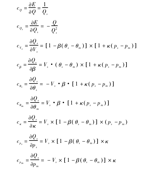 由測量(liang)模型求得靈(ling)敏系數: