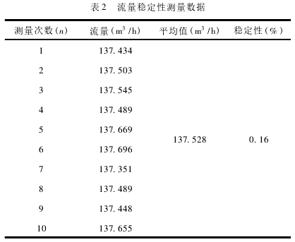 在測量(liang)過程中,裝置(zhi)的流量穩定(ding)性對單次測(ce)量時間以及(ji)單次測量标(biāo)準器的實際(jì)累積體積有(yǒu)影響。因此應(yīng)考慮流量穩(wen)定性🥵對測得(de)值的影響。以(yǐ)最大流量點(diǎn)qmax、=140m3/h爲例,進行各(ge)累計時間之(zhi)間的流量穩(wěn)定性🙇🏻試驗,連(lián)續測量10次,其(qí)測量數據如(ru)表2所示。