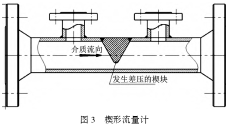(如圖3)的(de)工作原理(li)是當充滿(mǎn)管道的流(liú)體流經楔(xie)形孔闆的(de)時候,測量(liàng)楔形孔闆(pǎn)上遊側和(hé)下遊側流(liú)體的差壓(yā),将差壓信(xin)号轉變成(chéng)4~20mA的電流信(xìn)号,經過單(dan)片機處理(li)後輸出流(liu)量值。楔形(xíng)流量計與(yu)前面四種(zhong)流量計相(xiang)比,其精度(dù)最高(可達(dá)0.2級),測量範(fàn)圍最大(可(kě)達1:33)[6]。除此之(zhī)外,在低流(liú)速(0.01m/s)的情況(kuang)下,依然可(ke)以正常工(gong)作。缺點是(shì)結構複雜(za),制造成本(ben)高。工作壓(ya)力一般≤10MPa,工(gōng)作溫度一(yī)般≤400C。目前主(zhu)要用于高(gao)壓及以下(xià)鍋爐的主(zhǔ)給水和減(jiǎn)溫水管道(dào)上的流量(liang)測量。