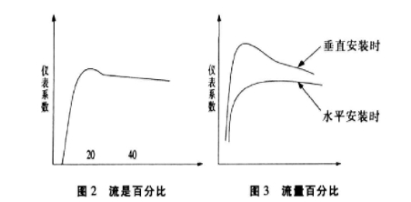 3.3渦輪(lun)流量計在安裝方(fang)式,上可以是水平(píng)、傾斜、垂直安裝,但(dàn)如圖3所示的那樣(yàng),随安裝方式的不(bú)同,,其流❤️量特性曲(qu)線有所變化。如果(guo)要想獲得高精度(du)的測量,必須采用(yong)水平安裝方式。如(ru)✏️果一定要采用垂(chuí)直安裝則應用垂(chuí)直安🏃🏻♂️裝方式對渦(wo)輪流量計重新校(xiao)驗,,并重新設定儀(yí)表系數。