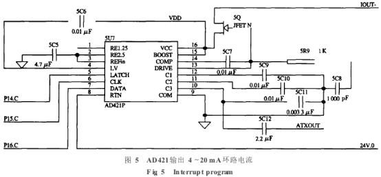 AD421其内部(bù)的電壓(ya)調節器(qi)與外部(bu)的場效(xiao)應管DN25D對(duì)輸入到(dao)🎯AD421的電壓(yā)進行調(diào)整,可提(tí)供十33V電(diàn)壓作爲(wèi)其他設(shè)備的電(dian)💰源.HART發出(chu)的FSK信号(hao),經過一(yi)個電容(rong)耦合送(song)到AD421中,轉(zhuan)♍換成相(xiang)應的0.5mA正(zhèng)弦電流(liú)信号,實(shi)現電壓(yā)信号到(dào)電流信(xin)号的轉(zhuǎn)🐆換,同時(shi),疊加在(zài)4~20mA的電流(liú).上送給(gěi)接收設(she)備,實現(xian)了HART協議(yì)的信息(xī)的交換(huàn).本電路(lu)耦合電(dian)容取爲(wei)🐪0.0033HE,如圖5所(suǒ)示.