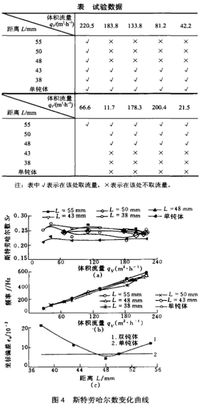 由4b圖,該曲線的(de)線性度與斯特勞(lao)哈爾數标準偏差(chà)相對🌈應,當L=50~46mm時雙鈍(dun)體流量--頻率曲線(xiàn)的線性度較好。
